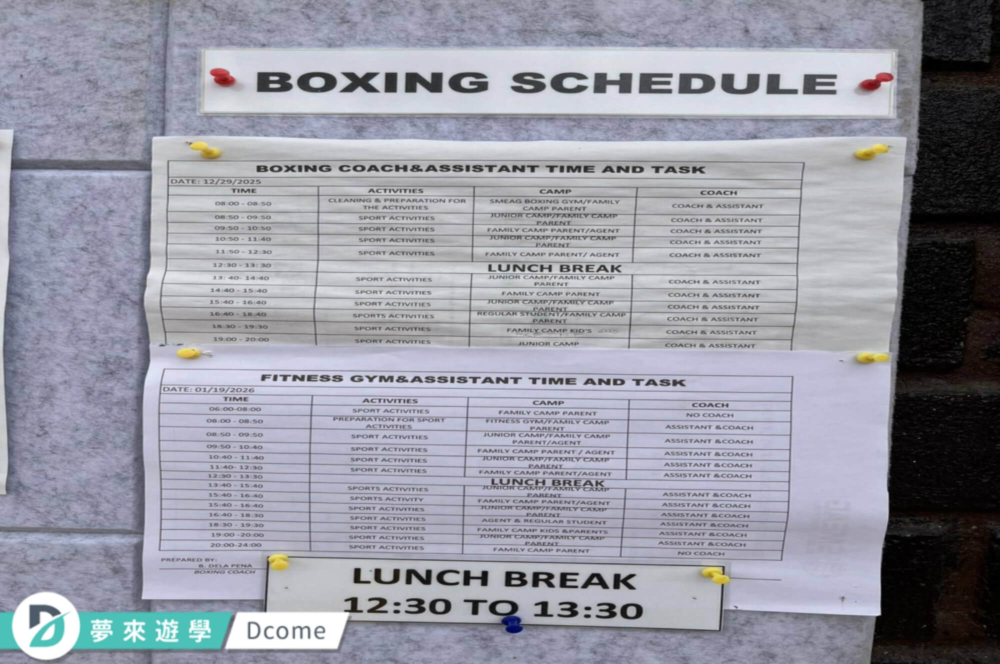 活動課1堂:游泳、足球、高爾夫球、拳擊、園藝